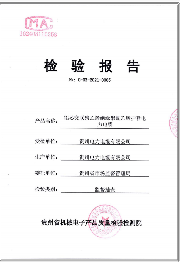 鋁芯交聯(lián)聚乙烯絕緣聚氯乙烯護(hù)套電力電纜 檢驗(yàn)報告