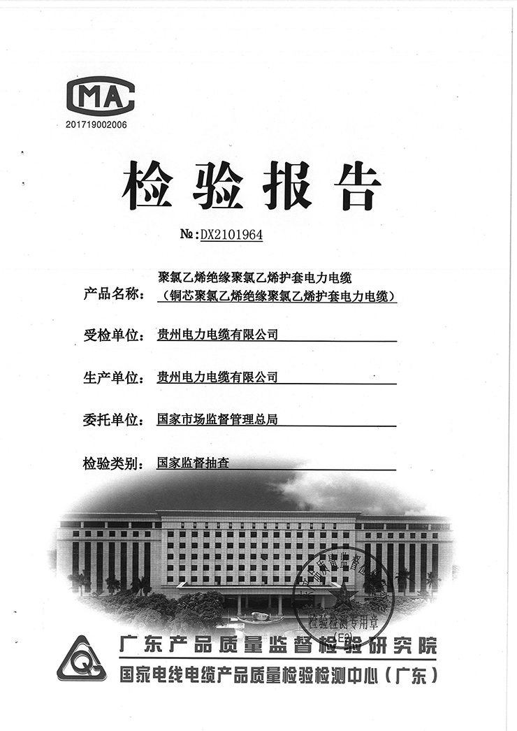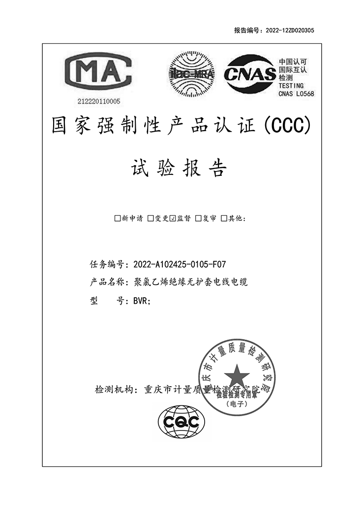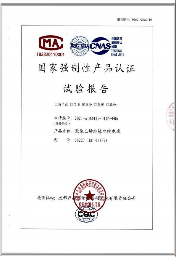 聚氯乙烯乙烯絕緣電纜電線 國家強(qiáng)制性產(chǎn)品試驗(yàn)認(rèn)證報告